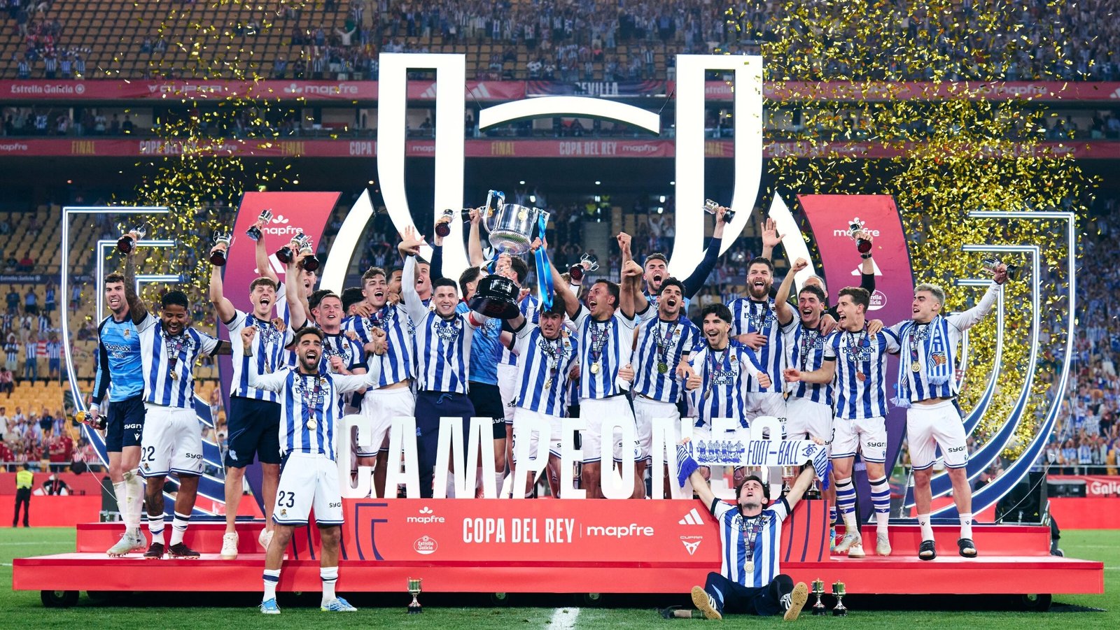 La Copa del Rey encontró dueño en una noche que no fue un partido, sino un terremoto emocional. La Real Sociedad levantó el título tras un 2-2 vibrante y una tanda de penaltis donde emergió un héroe inesperado, casi cinematográfico: Unai Marrero, el portero que detuvo los lanzamientos de Sorloth y Julián para coronar a los txuri‑urdin en una final que se recordará durante décadas. Un triunfo que confirma la edad dorada del club: segundo título copero en cuatro años, tras la final de la pandemia conquistada sin público.