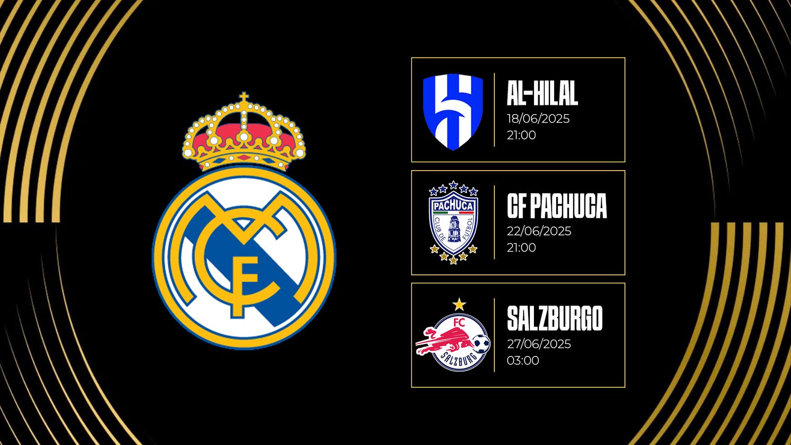 El Real Madrid ya conoce su hoja de ruta en el nuevo Mundial de Clubes de la FIFA, que se celebrará cada 4 años con un formato ampliado de 32 equipos, representando a todas las confederaciones (UEFA (12), CONMEBOL (6), CONCACAF (5), AFC (4), CAF (4) y OFC (1)) y clasificándose por su rendimiento entre 2021 y 2024. La competición podrá seguirse en DAZN y contará con ocho grupos de cuatro equipos, donde los dos primeros de cada grupo pasarán a octavos de final.