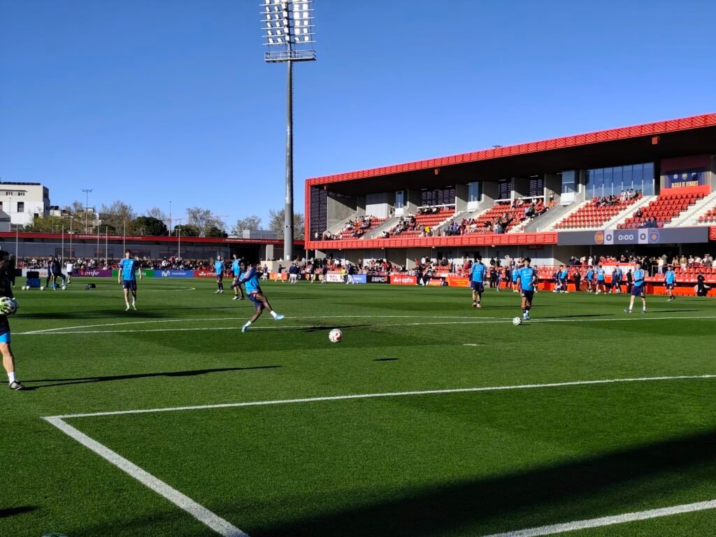 Al ritmo de Justin Quiles, entre otros, calentó las España sub 21 mientras el campo se iba llenando. Los titulares lo hacían al fondo, mientras los suplentes, más cerca de la salida de vestuarios. Misma situación que los visitantes. En un césped prácticamente perfecto, salvo por una pequeña macha en la línea del centro del campo. Con las definiciones a puerta acabaron ambos equipos, aunque Kosovo mandó un balón por encima de la grada tras la portería, antes del último repaso de los aspersores.