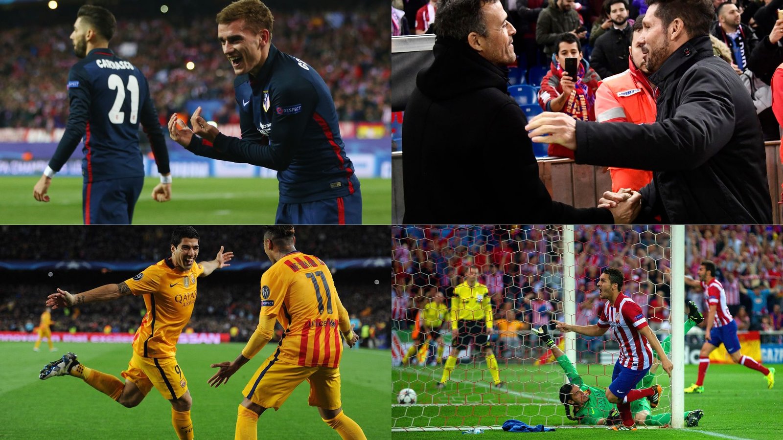 La primera manga de la eliminatoria terminó en empate a 1. Diego Ribas abrió la lata con un disparo de larga distancia fulminante y Neymar hizo el gol de la igualada. Una semana más tarde, el Calderón se engalanó y empujó a sus soldados hacia otra semifinal de Champions 40 años después (la cuarta de su historia hasta ese momento; la anterior había sido ante el Bayern en la temporada 1973/74). Koke, rojiblanco desde la cuna, fue el autor de la diana decisiva. Ahora, una década después, Barça y Atlético vivirán el tercer episodio de la saga.