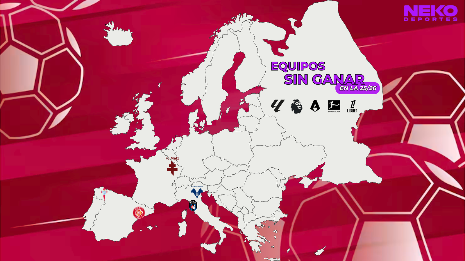 ❌⚽️ CINCO equipos de las CINCO grandes ligas continúan SIN GANAR en la temporada 2025/26